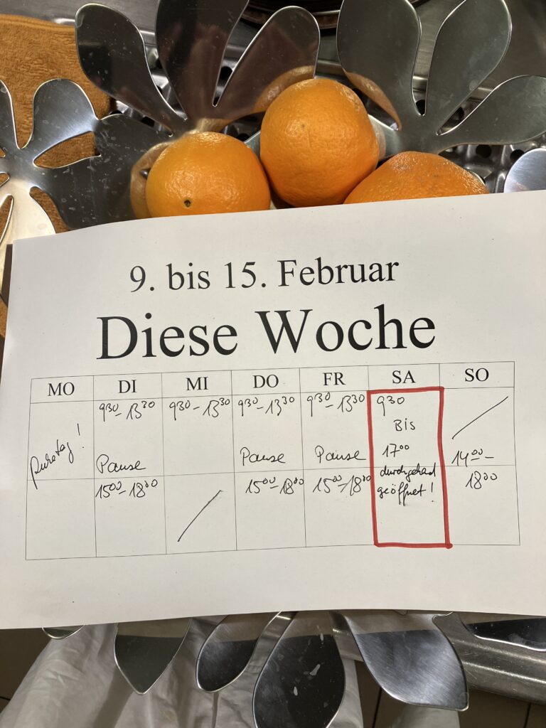 Dienstag, Donnerstag, Freitag und Samstag 15:00 – 18:00 Uhr