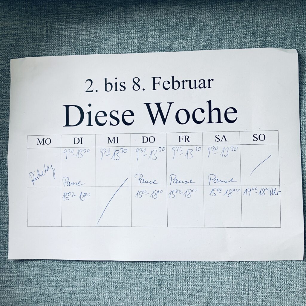 Dienstag bis Samstag 9:30 – 13:30 Uhr